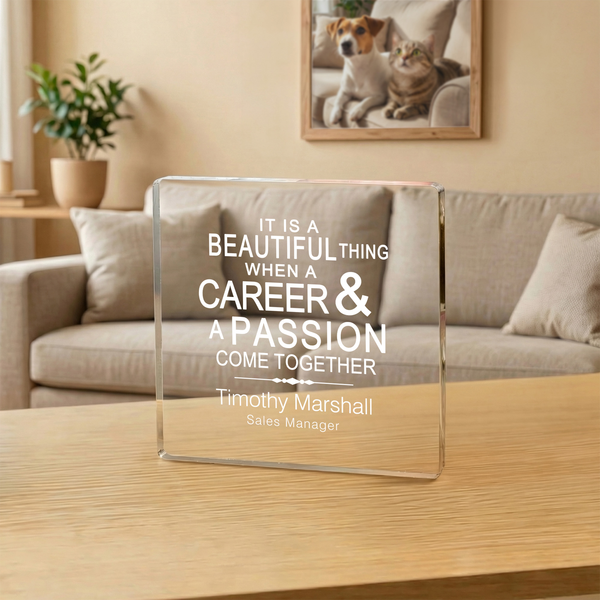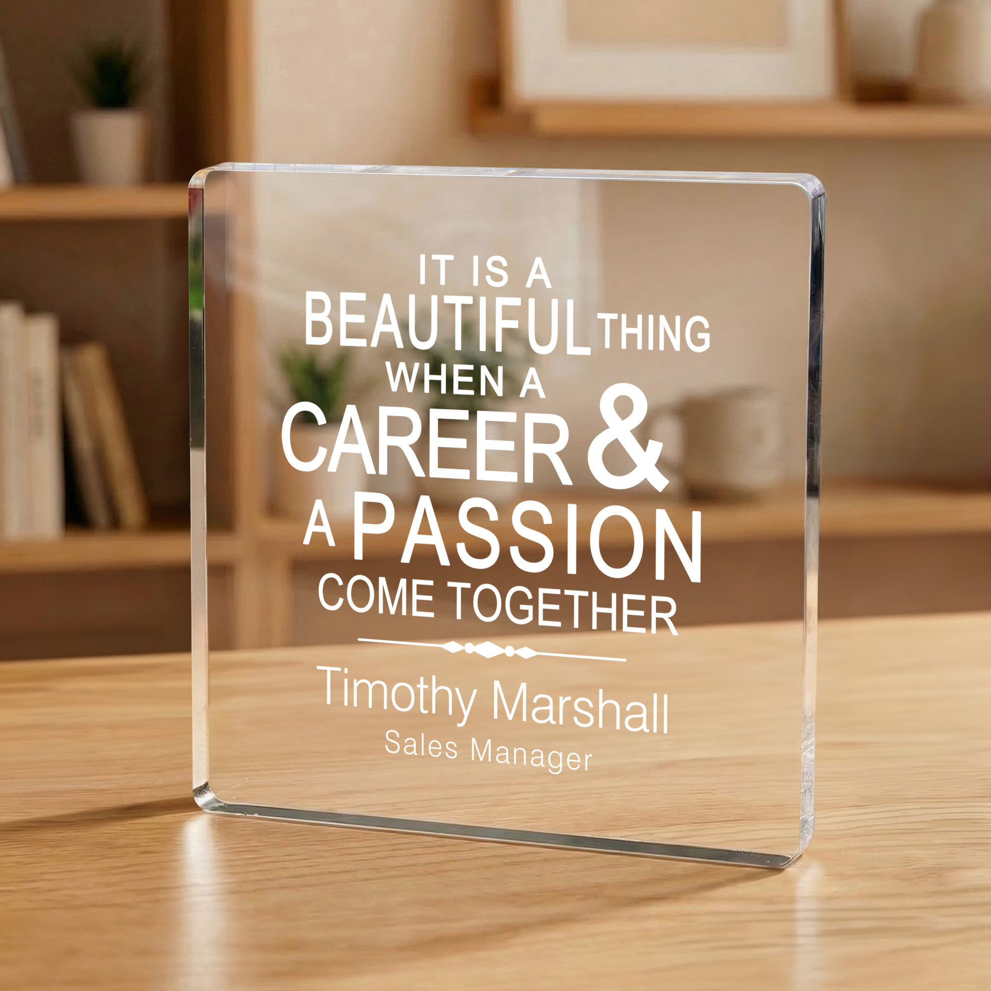Personalized Touch - Each plaque is personalized with the recipient’s name and job title to reflect their passion or contribution, creating a truly one-of-a-kind piece.