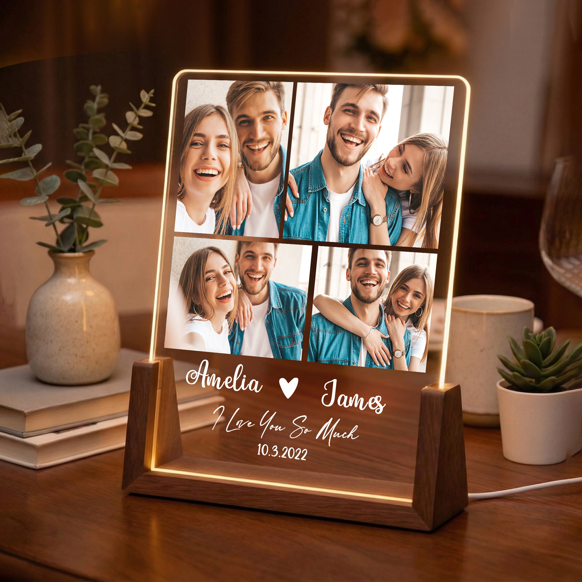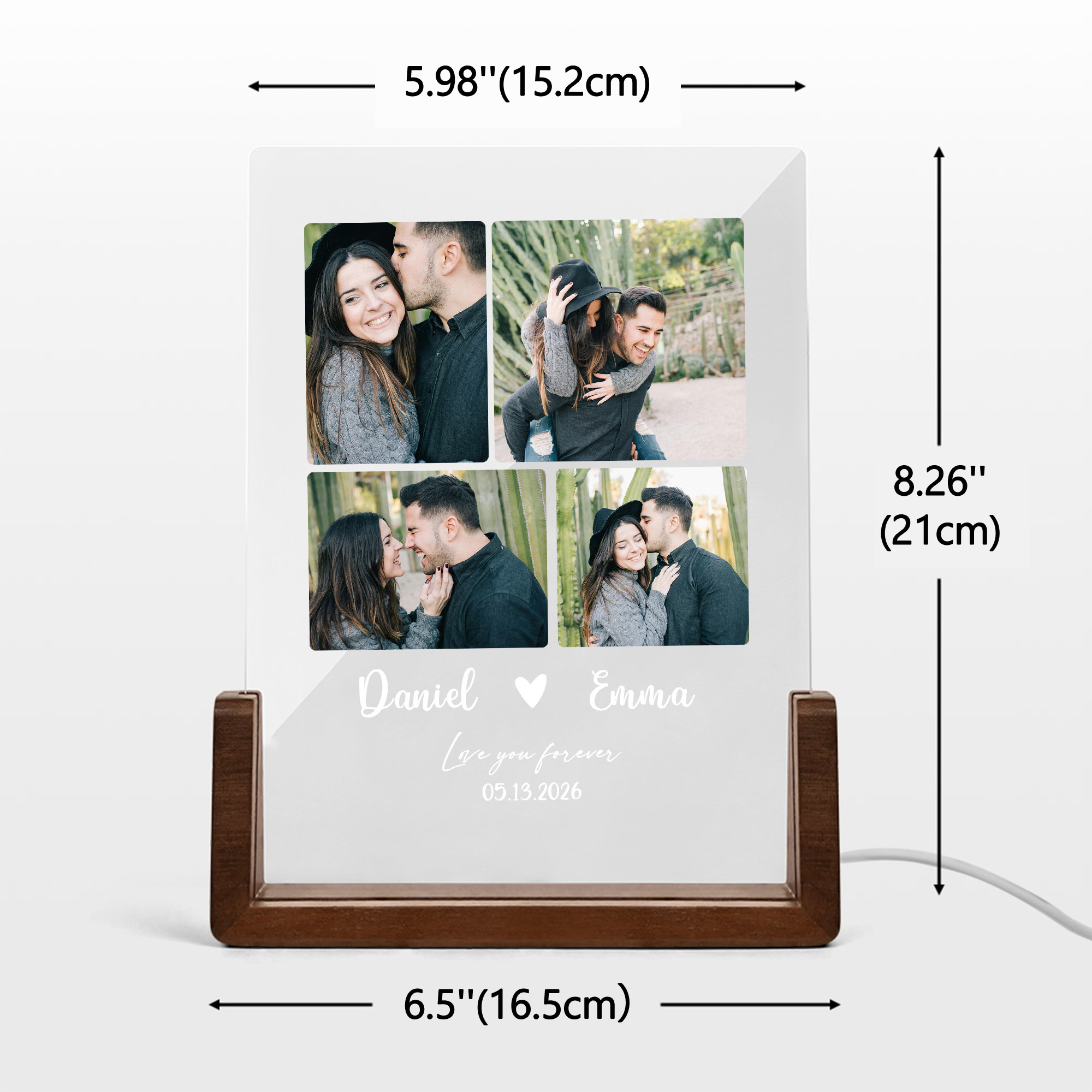 Photo Collage Design - This LED night light features a beautiful photo collage layout that brings special memories together in one glowing display, creating a heartfelt piece that celebrates love, connection, and shared moments. Its clean and modern style fits easily into bedrooms, living rooms, or bedside tables.